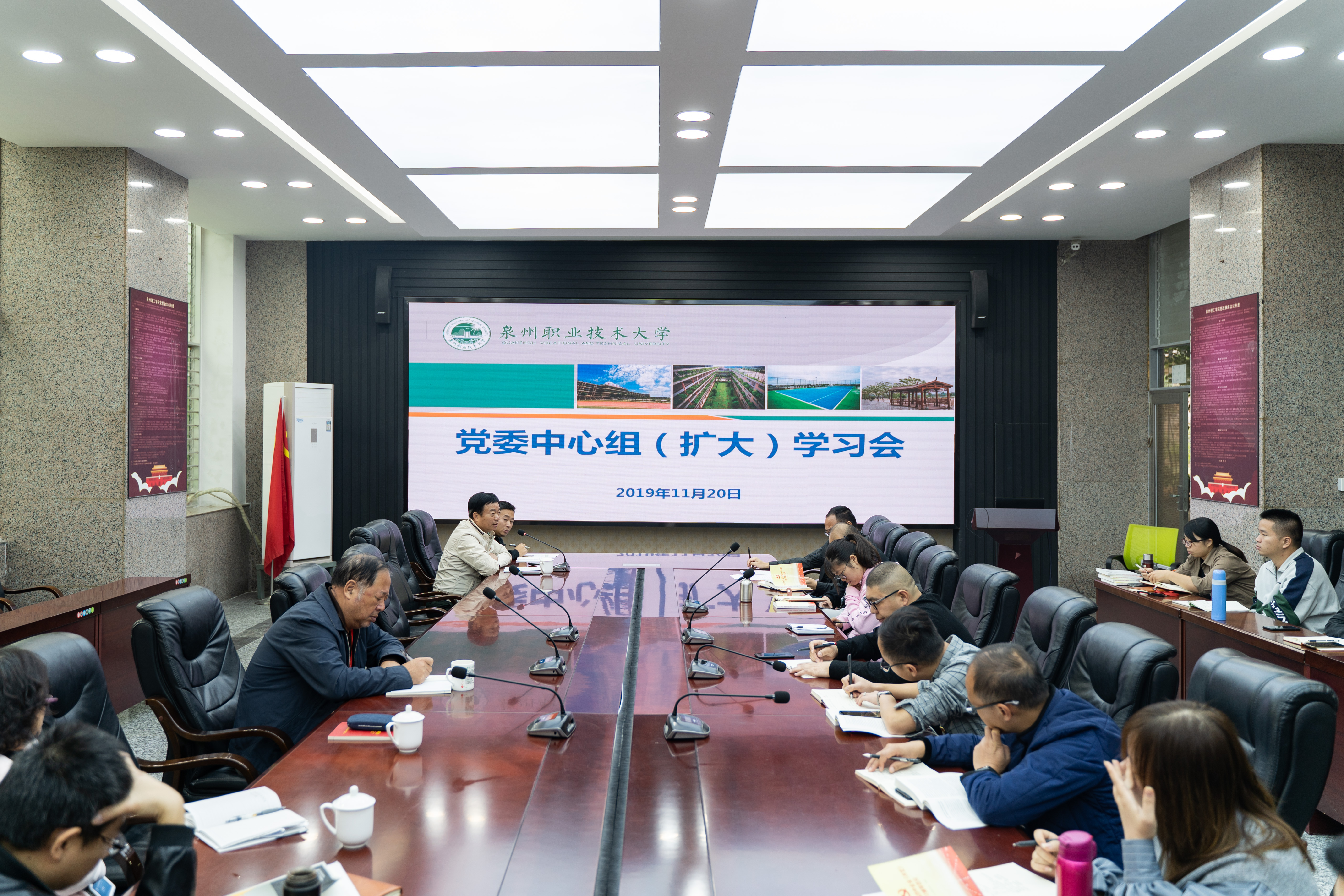 11月20日上午,我校党委中心组学习(扩大)会在主楼第一会议室召开,学校党政领导、各党支部书记、支委等参加会议。 会上,首先全体与会人员认真学习研讨党的十九届四中全会精神,党委书记林其天指出,大家要结合正...