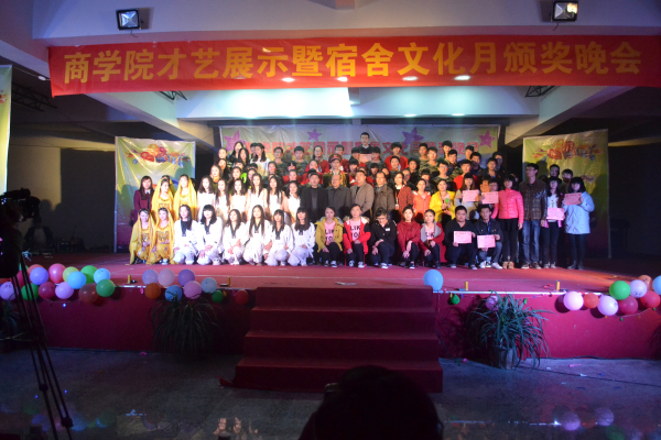 12 30 晚上8点,商学院 show出自我、放飞梦想”才艺展示暨宿舍文化月颁奖晚会在教学楼小礼堂举行。人事处处长钱玉琴、学工处处长杨津平、学工处副处长杨永华、校工会主席兼车辆系主任陈其生、校党委宣传部部长林文艺、商学院院长翁长武、招生就业处处长、校团委书记兼商学院党总支书记蔡金佩、校团委副书记罗敏、商学院党总支副书记陈荣惠、商学院院长助理吴剑锋及各系党政领导、老师出席活动。