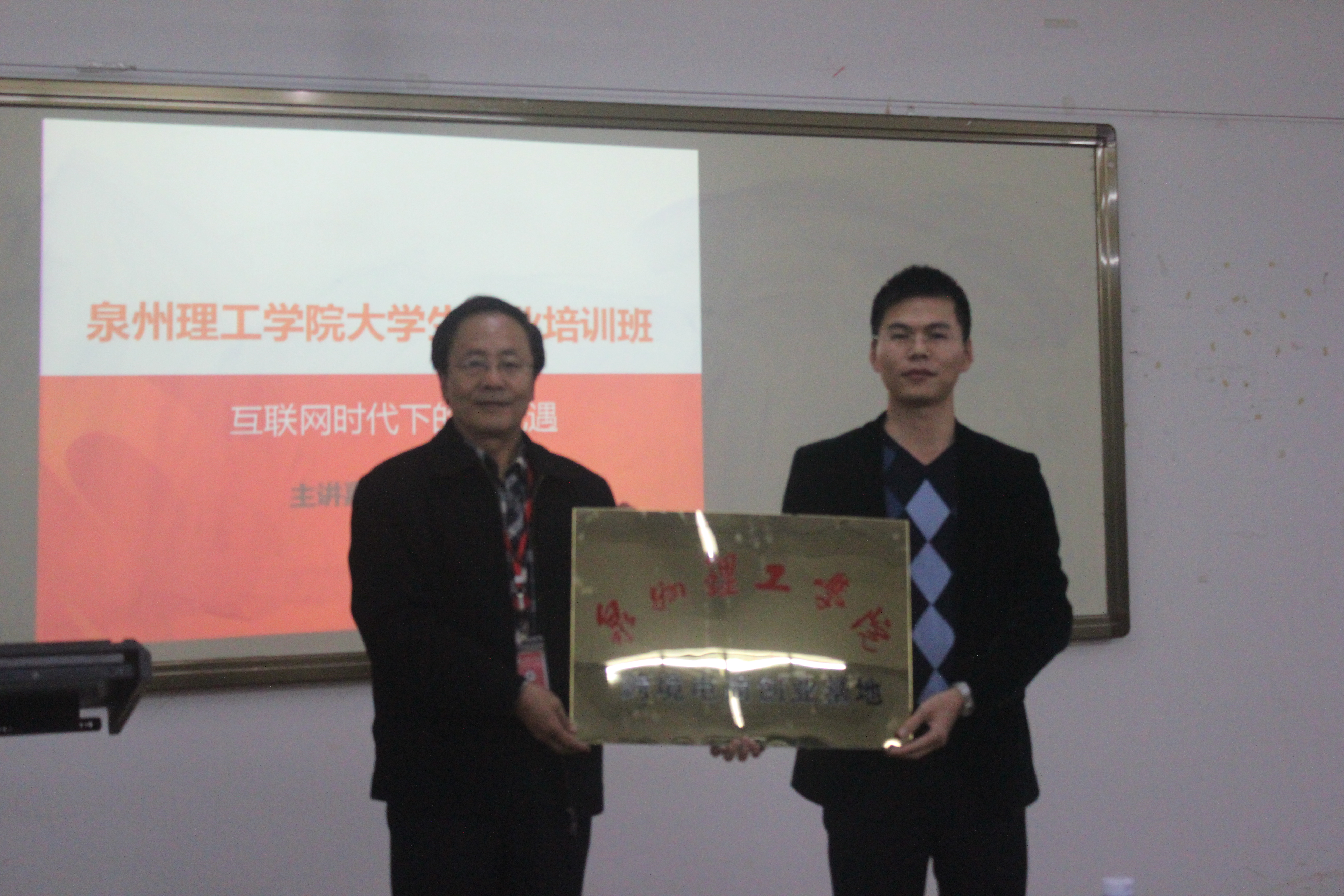 会前,由于雷副校长授予新丝路总经理林时来“泉州理工学院创业导师”聘书及新丝路有限公司“泉州理工学院跨境电商创业基地”牌匾。