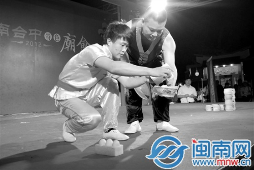 陈泽毅表演“踩鸡蛋”