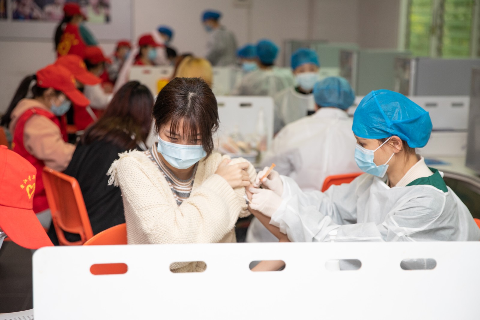 14:30校内接种点正式启用,首日顺利完成430名学生的疫苗接种。
