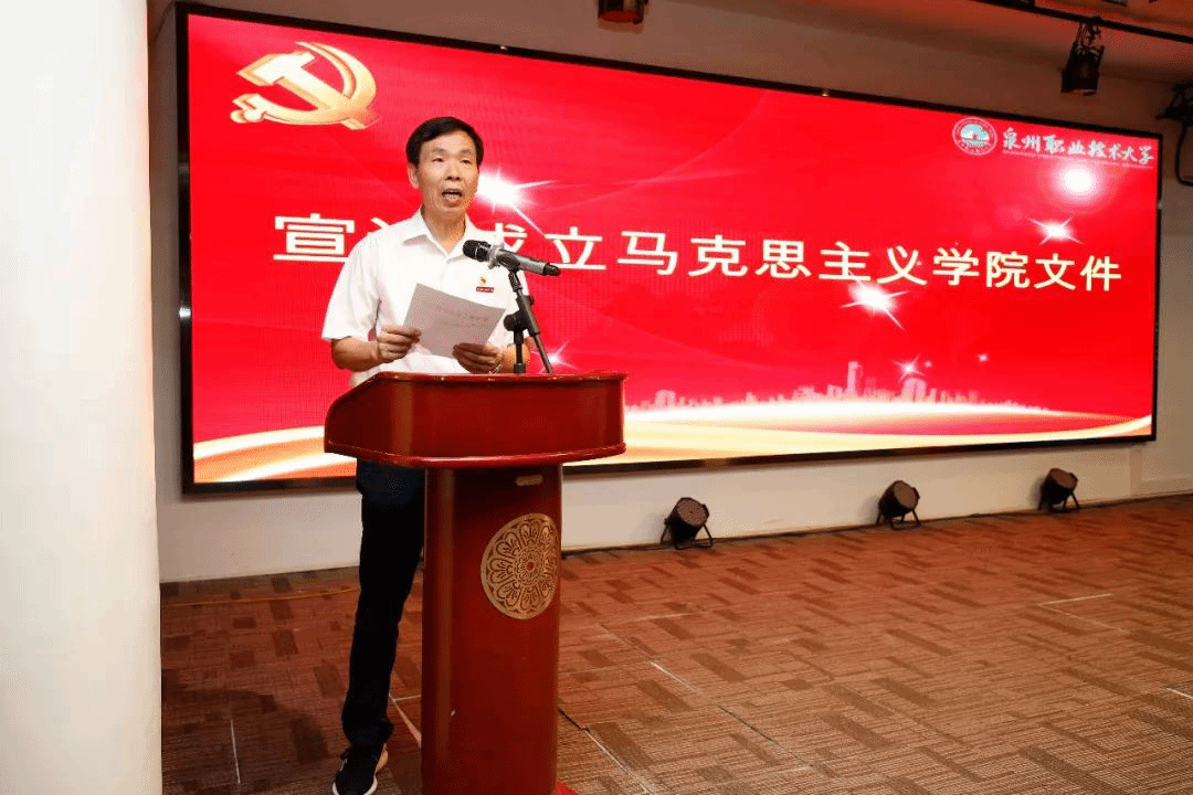 庄文瑞副校长宣读成立泉州职业技术大学马克思主义学院文件