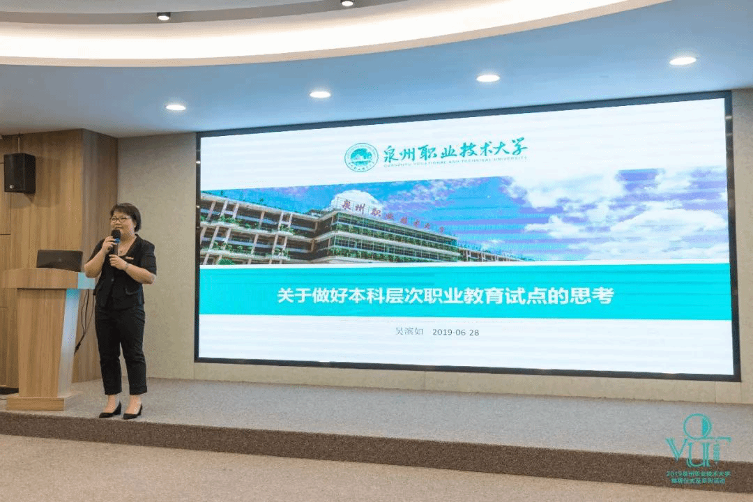 前不久,国家印发了《国家职业教育改革实施方案》,并且召开了全国深化职业教育改革电视电话会议,首次从国家层面明确“职业教育与普通教育是两种不同教育类型,具有同等重要地位”,为贯彻中央关于职业教育改革发展的新部署,教育部決定开展本科层次职业教育改革试点工作,值此泉州职业技术大学揭牌的大好日子,中国高等教育学科奠基人潘懋元教授、厦门大学教育研究院院长别敦荣教授、光明日报职教版主编练玉春博士、上海工程技术大学科研处副处长陈萦博士等教育界专家学者、学校领导及兄弟院校领导出席本科层次职业教育战略发展研讨会,共商本科层次职业教育试点的战略发展之路。