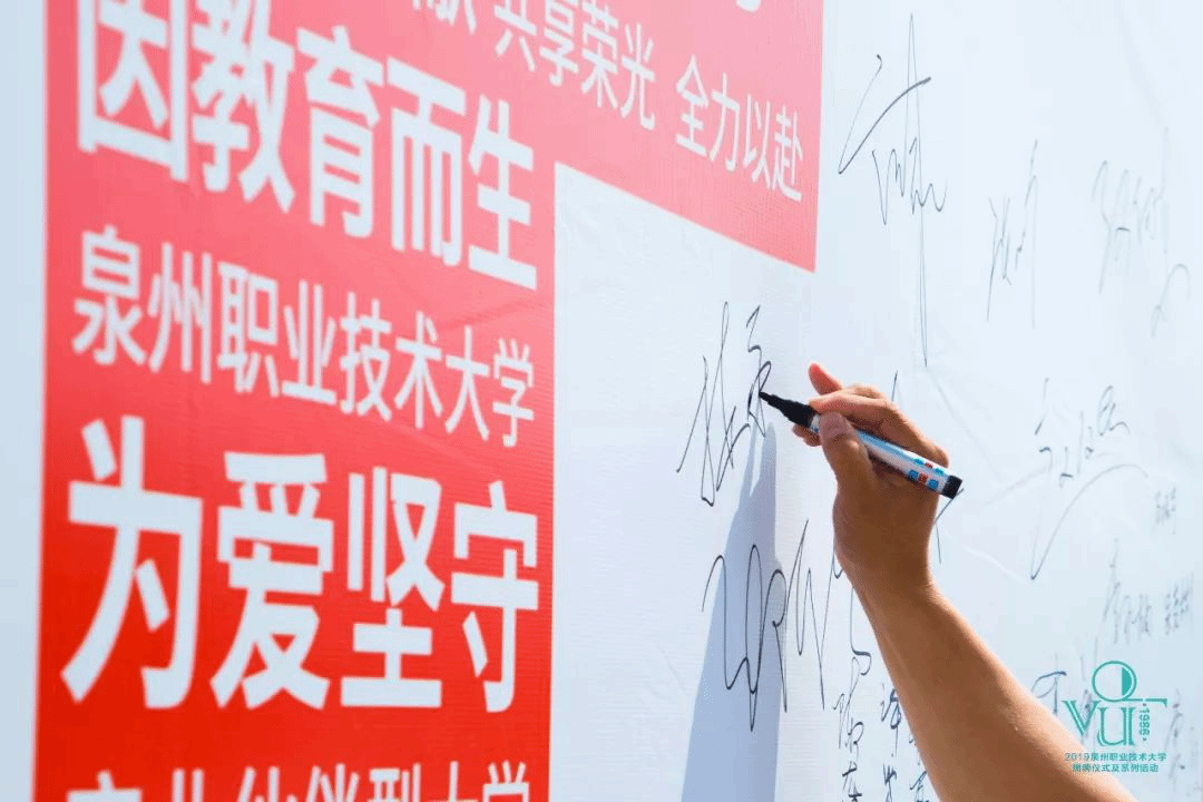 今日,来自五湖四海的嘉宾朋友欢聚一堂,共同见证全国首批本科层次职业教育试点学校,泉州职业技术大学的诞生,未来,我们将不负期望,迎接挑战,争创下一个辉煌!
