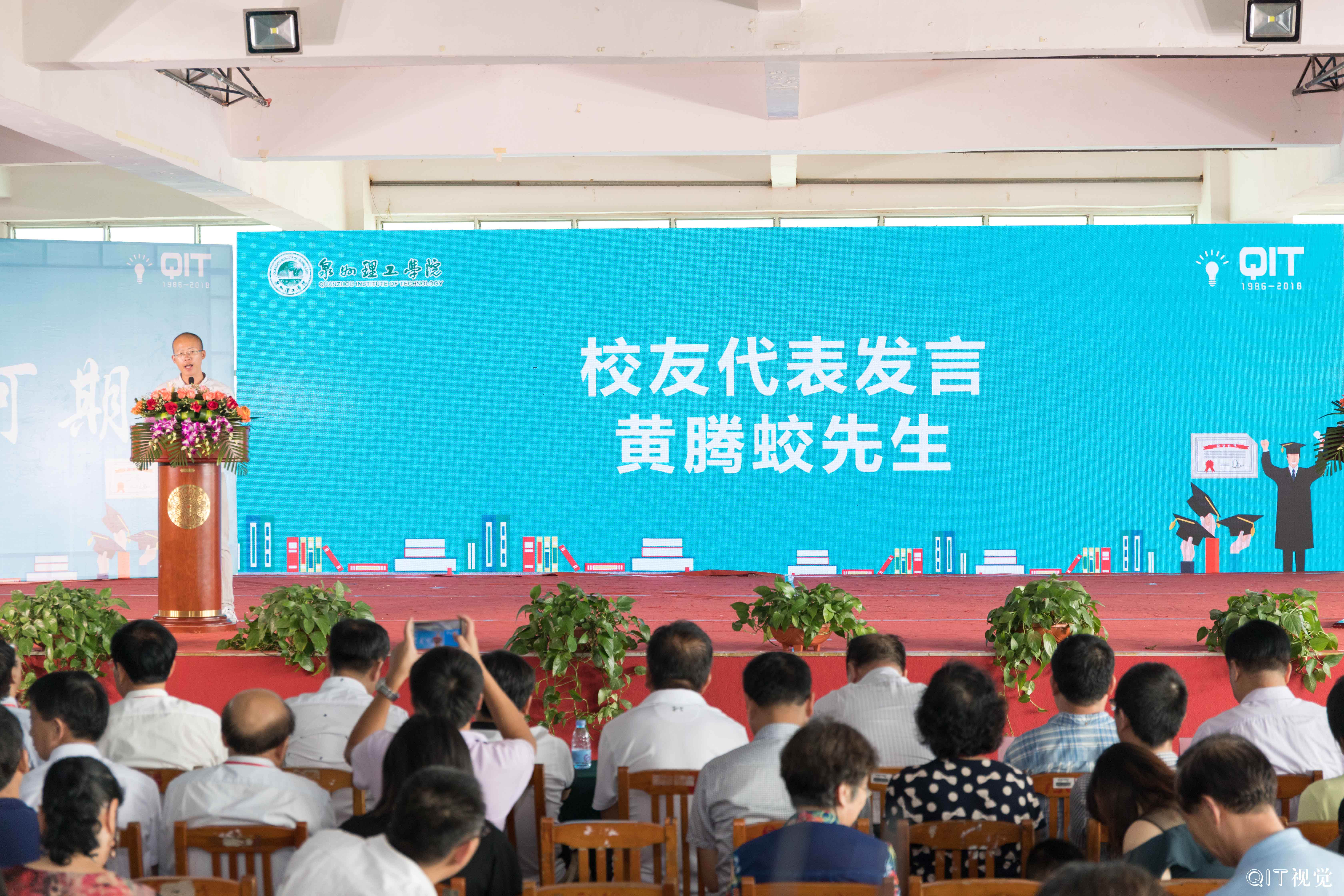 9日下午,泉州理工在西教小礼堂隆重举行2018毕业典礼,董事长吴金营、校长臧树良、书记林其天、名誉校长苏志明、副校长吴滨如、副校长于雷、副校长庄文端等校领导以及各院系、部门相关负责人、教职工、2018届全体毕业生参加典礼。出席典礼的嘉宾有泉州市高教办主任陈志刚、内坑镇政府副镇长张辉永、内坑派出所副所长张谋泽、创业者协会代表吕谊阳、杨江鸿、陈连套、校友代表黄腾蛟等人。典礼由校长助理郭霏霏主持。