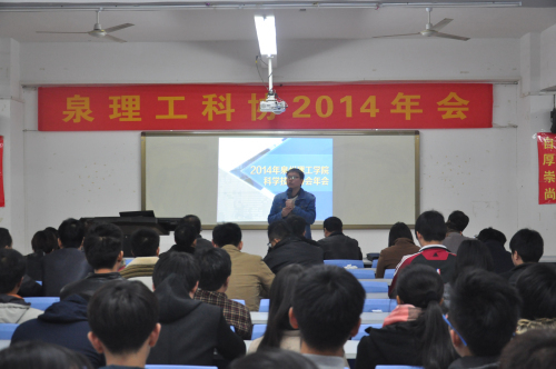 30日晚上7时,泉州理工学院在教学楼238教室举行2014年科学技术协会年会。会上,董事长吴金营要求大家,积极参与学校的科学技术协会,用科学的方法把我校建设成为一所有名的学校,坚持产学研结合,带动科教改革,推动现代化建设,促进人类进步,同时培养一批校内外创业骨干力量。吴金营董事长还说,科协的宗旨是“为民谋利,科学发展”,任务是科学管理、科学育人、科研创新。