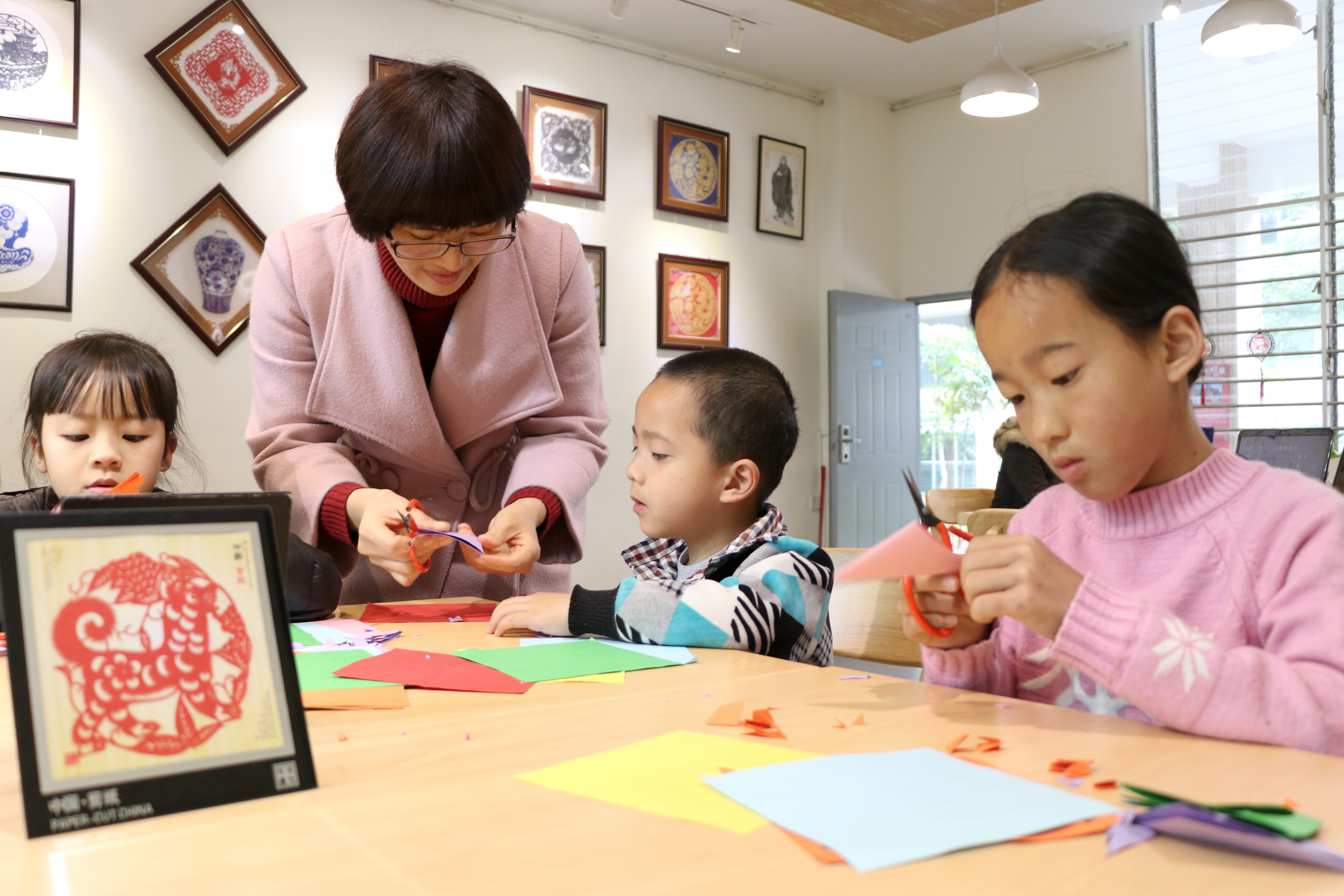 曾芳芳说,她喜欢剪纸姹紫嫣红,喜欢孩子们笑靥如花,喜欢和孩子一起互动的时光,“我希望通过剪纸,给孩子们带来爱和艺术。”