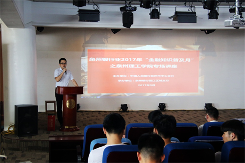 泉州银行晋江区域支行培训讲师陈武先生通过课件和课堂互动的方式向同学们详细介绍一些和大学生息息相关的金融知识,如校园贷、培训贷等不良信贷的危害性,网络、电信诈骗等新型违法犯罪的手段以及如何识别防范。活动现场,泉州银行晋江区域支行工作人员悬挂标语条幅、发放金融知识手册、有奖竞答等方式开展咨询、答疑活动,普及金融文化知识,培养大学生金融法制意识和信用观念。