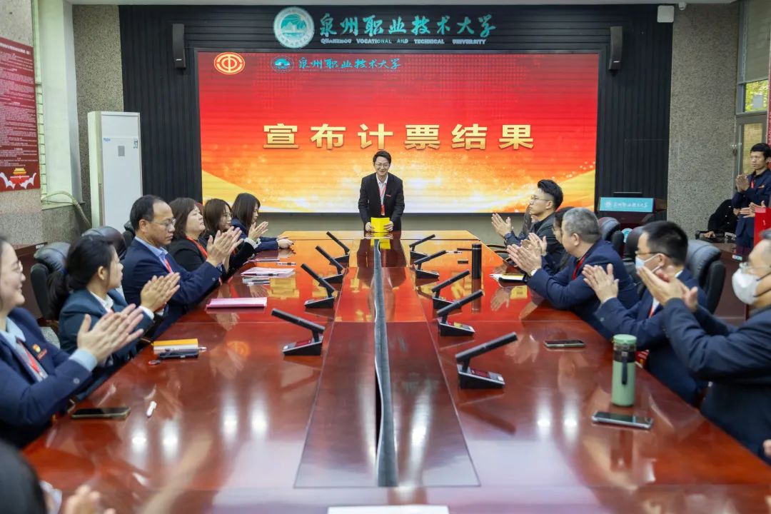 陈其生宣读了《泉州市教育工会关于同意泉州职业技术大学工会第四届委员会、经费审查委员会和女职工委员会委员候选人的批复》,代表们分别审议通过了工会第四届委员会和经费审查委员会委员候选人名单、《大会选举办法》,以及总监票人、监票人和计票人建议名单。随后大会选举产生了工会届委员会和经费审查委员会。