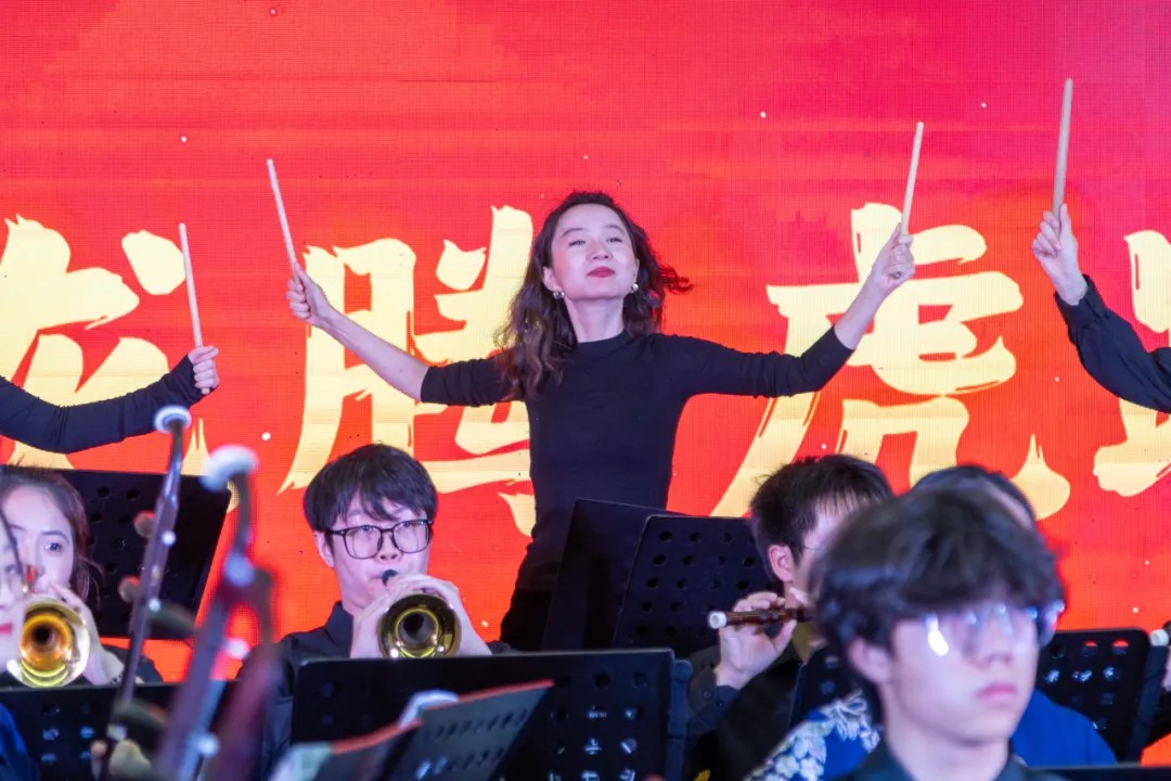 铿锵有力、气势磅礴的民乐响起,一曲《金蛇狂舞》拉开了音乐会的序幕。这是聂耳于1934年根据民间乐曲《倒八板》整理改编的一首民族管弦乐曲,奠定了音乐会昂扬的基调和欢腾气氛。