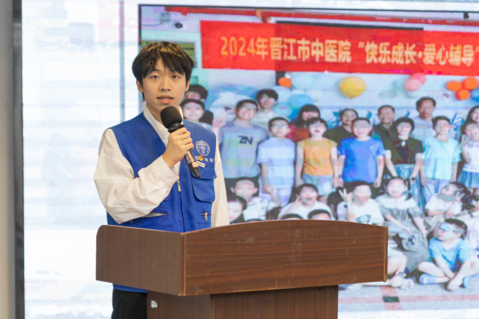 优秀志愿者代表沈文从成为一名志愿者的契机及志愿服务经历展开描述,表达了志愿服务经历对自身产生的积极影响,表示自己作为青年一辈将不断秉承“奉献、友爱、互助、进步”的志愿精神,积极参与志愿活动,奉献青春力量。