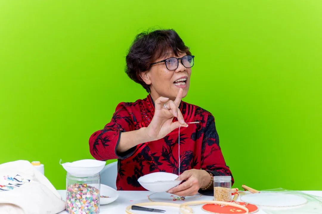 ▲ 泉州珠绣非遗技艺代表性传承人陈克忍老师带领营员体验珠绣