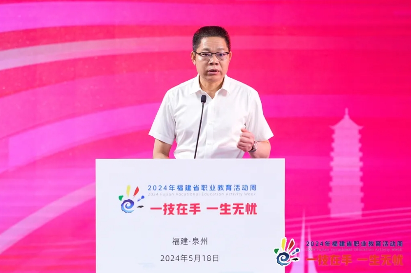 5月18日,由福建省教育厅、省委宣传部、省委网信办、省人社厅等10部门联合主办的2024年福建省职业教育活动周省级主会场活动在泉州晋江举行。福建省教育厅副厅长王飏,泉州市政协副主席庄灿霞,晋江市政府副市长、晋江市域产教联合体理事长吴尊意等出席启动仪式并致辞。省、市两级职业教育联席会议成员单位代表,省教育厅有关处室、直属单位负责人,政校行企合作单位代表;各设区市教育局、平潭综合实验区社会事业局分管职业教育负责人,我省60多所中高本院校师生代表、校企合作单位相关负责人等300余人参加启动仪式。