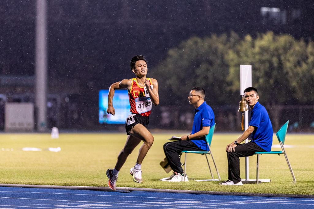 比赛期间,2020级休闲体育3班的张珅玮每天都在赛后控制中心忙碌。他负责引导运动员进出场,配合裁判员控制好比赛流程,还要适时安抚好运动员的情绪。其中,最具挑战的是3000米、5000米长跑赛事。令他印象深刻的是,在一场5000米比赛,一位男生摔倒后,又急忙爬起来,当时,人已神志不清、走路摇摇晃晃,嘴里却兴奋喊着“我还能跑……”张珅玮见状急忙上前,搀扶住男生,并拿矿泉水往其头上浇,帮其进行物理降温,还不停地安抚,让运动员冷静下来,确保人员安全和赛场秩序。