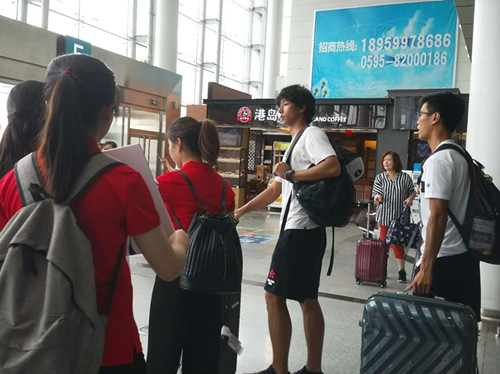 任务执行前,商学院团总支书记罗永珍老师针对12名志愿者召开会议,提前做好人员配合工作布置。12名同学分为两个小组,6人为一组,做为酒店接待服务组和晋江机场接机组。罗老师同时强调了在服务过程中应该要注意的事项和具体的要求,希望同学们始终保持热情,发挥特长,以主人翁的姿态更好服务好本次大赛的各项事宜。