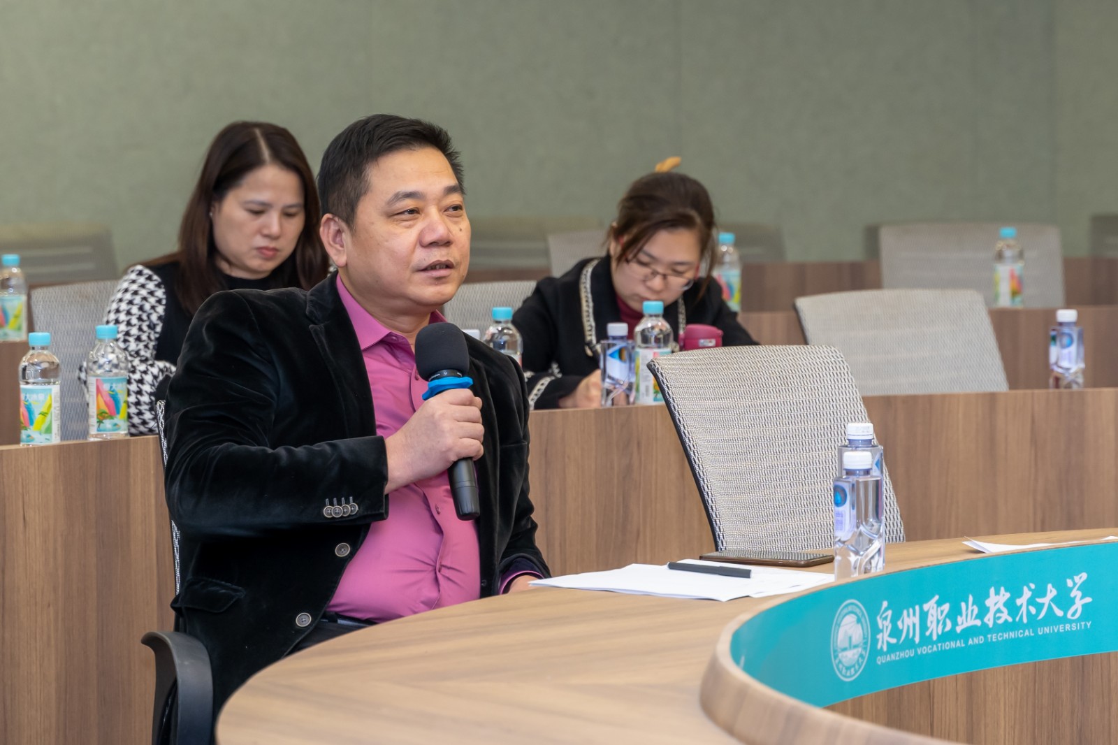 本次会议邀请泉州市工程机械行业协会下属等十余家企业代表参会。副校长郭霏霏、智能制造学院书记蔡海毅、学院教师代表等参加会议。会议由泉州市工程机械行业协会秘书长吕华元先生主持。
