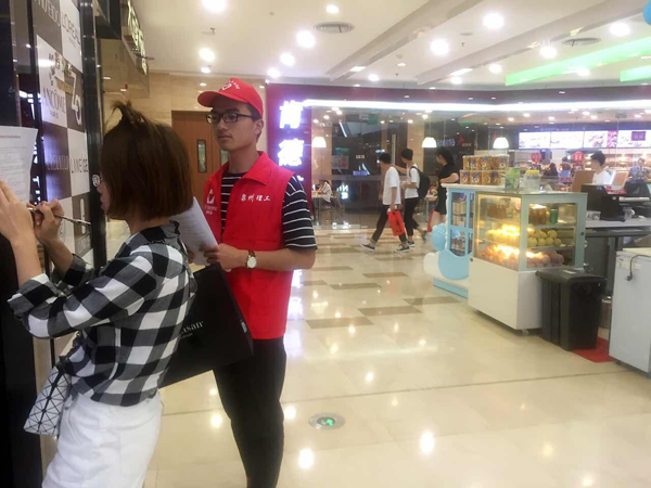 26日上午9点,本次实践活动的启动仪式在晋江市委开展,晋江市委文明办李培植副主任、工学院团总支黄胤聪书记及实践团队的全体成员参加了启动仪式。启动仪式上,李培植副主任阐明了本次活动的目的与意义,希望大家为晋江创建文明城市的工作贡献自己的一份力量。随后,带队的黄胤聪老师给大家分发工作证、分配任务,带领18位志愿者走进社区、商超等,正式开始调研活动。晋江电视台的记者到场随从拍摄。