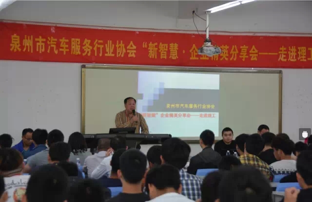 422日,由泉州市汽车服务行业协会、泉州理工学院、泉州宝通贸易有限公司共同主办,由中正兄弟汽车影音机构、惠安美鹰汽车美容中心、水头建兴之美汽车美容中心、嘟嘟LOOK车灯改装中心、深圳国领电讯公司共同协办的泉州市汽车服务行业协会新智慧·企业精英分享会活动在泉州理工学院教学楼二楼238会议室隆重举行。